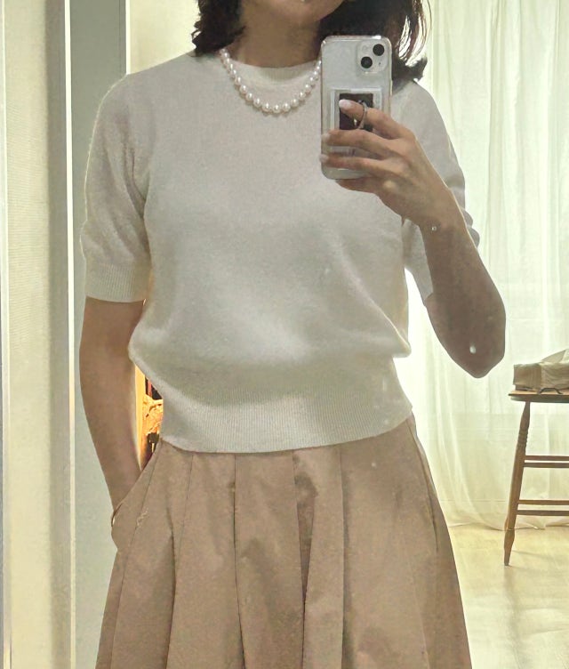 여러가지 브랜드에서 캐시미어 니트 구입하다보니 기본 화이트 반팔니트도 필요해서 우연히 인스타 광고보고 들어와 구매했습니다.