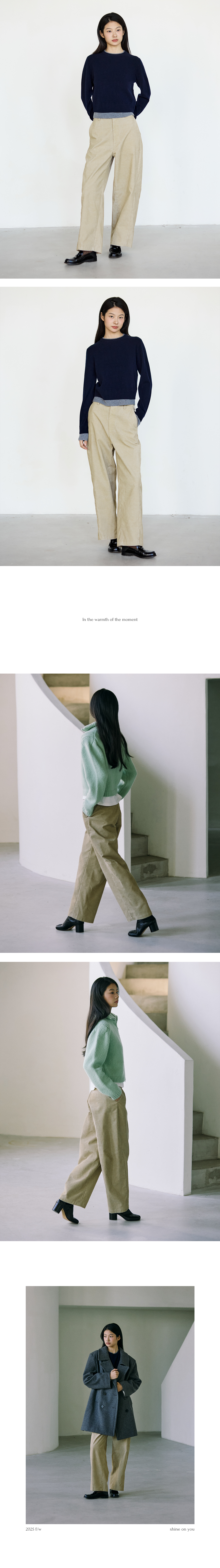 SHINE ON YOU values the timeless style of your life and strives to provide our premium knitwear. All of our products are produced in our own factory with a limited number based on the customers' requests.