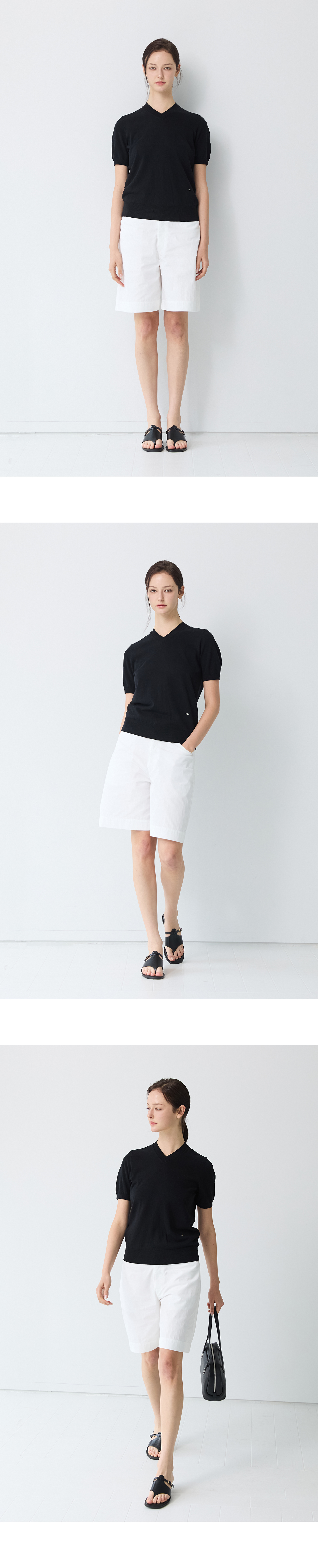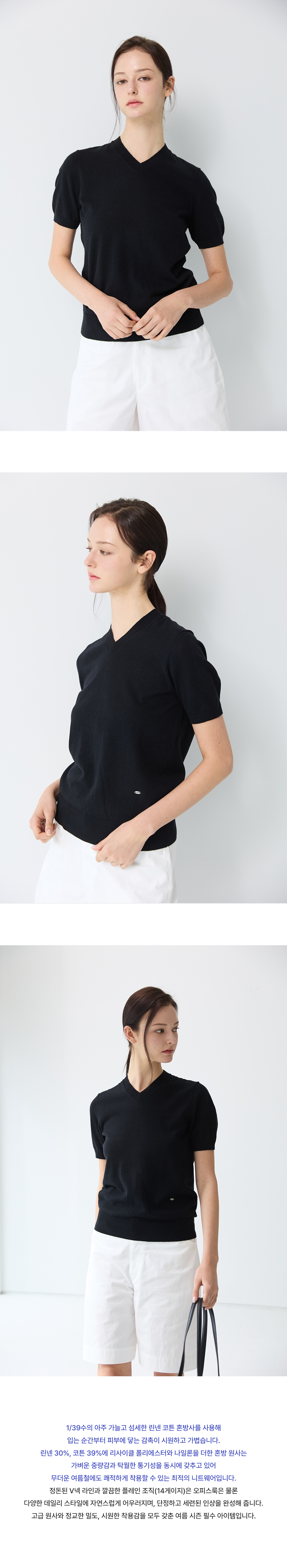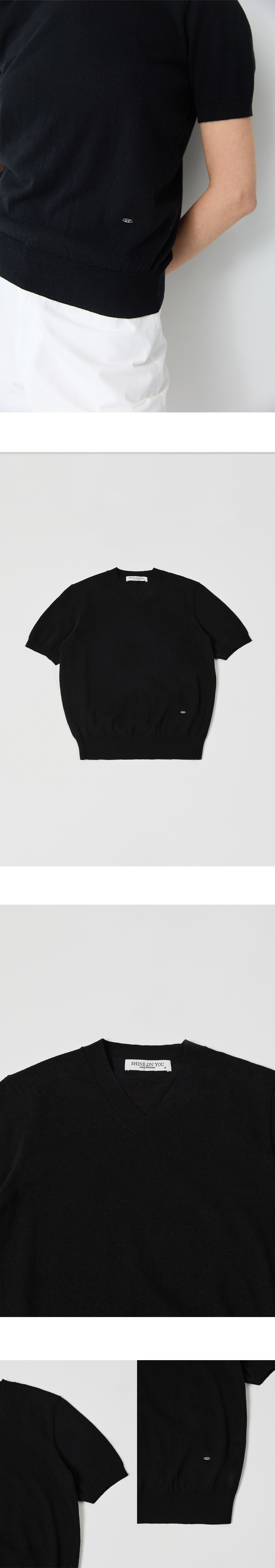 Linen Cotton V neck Short Sleeve Knit_Black