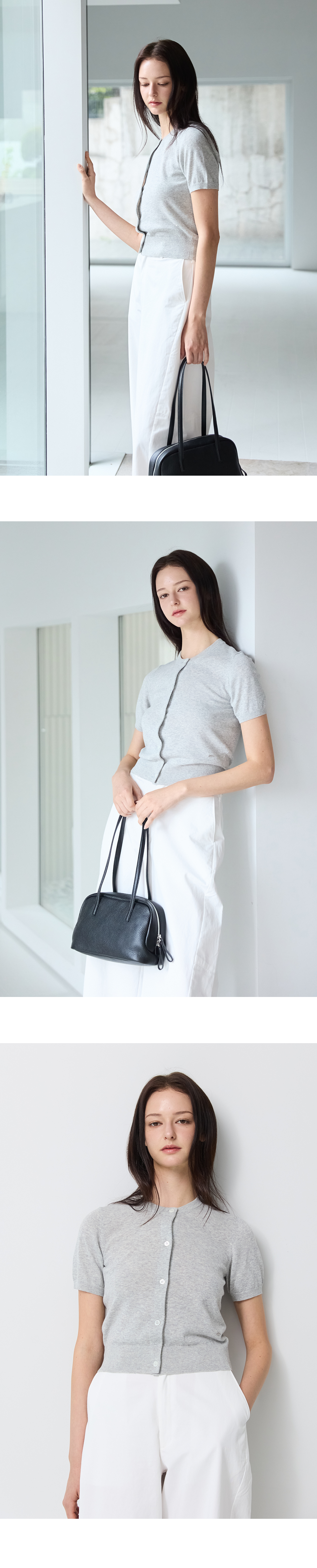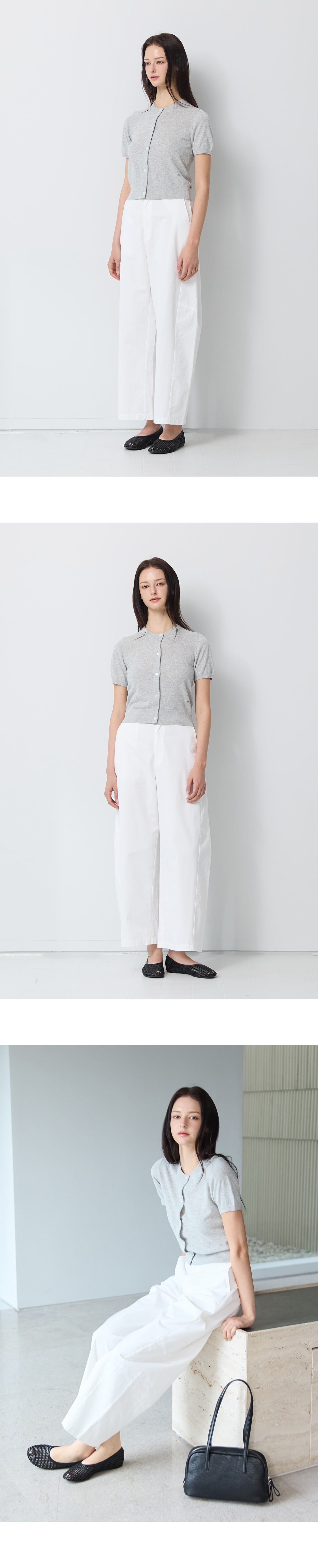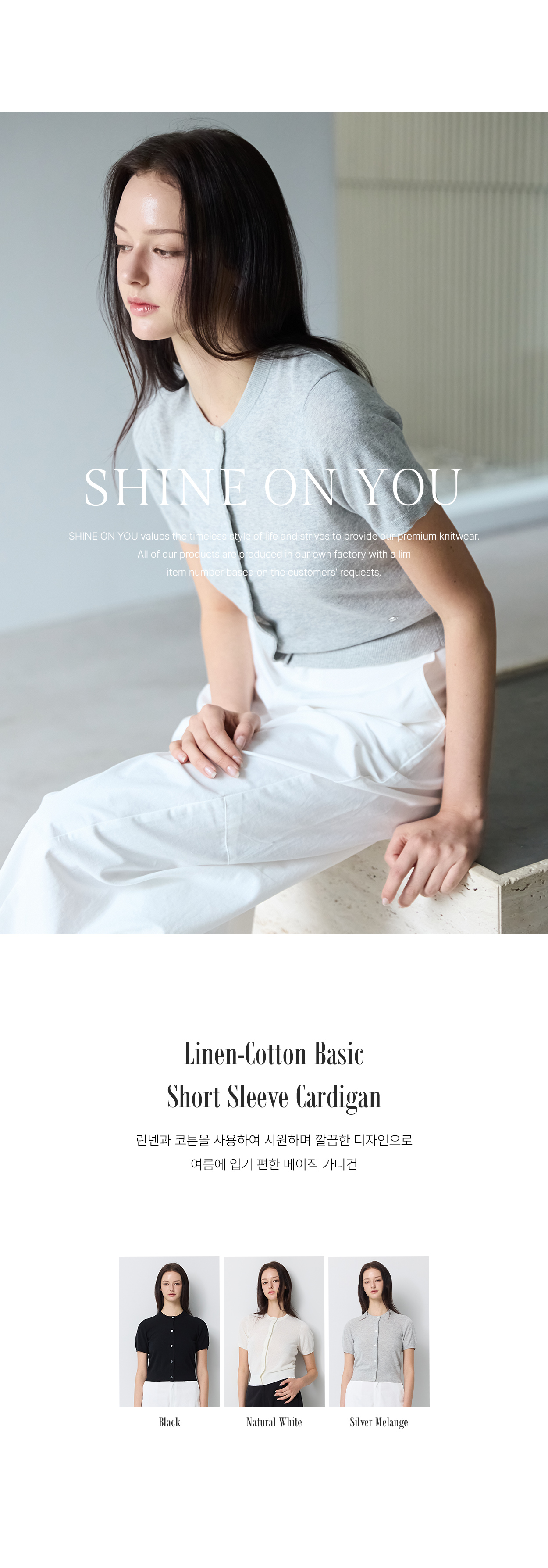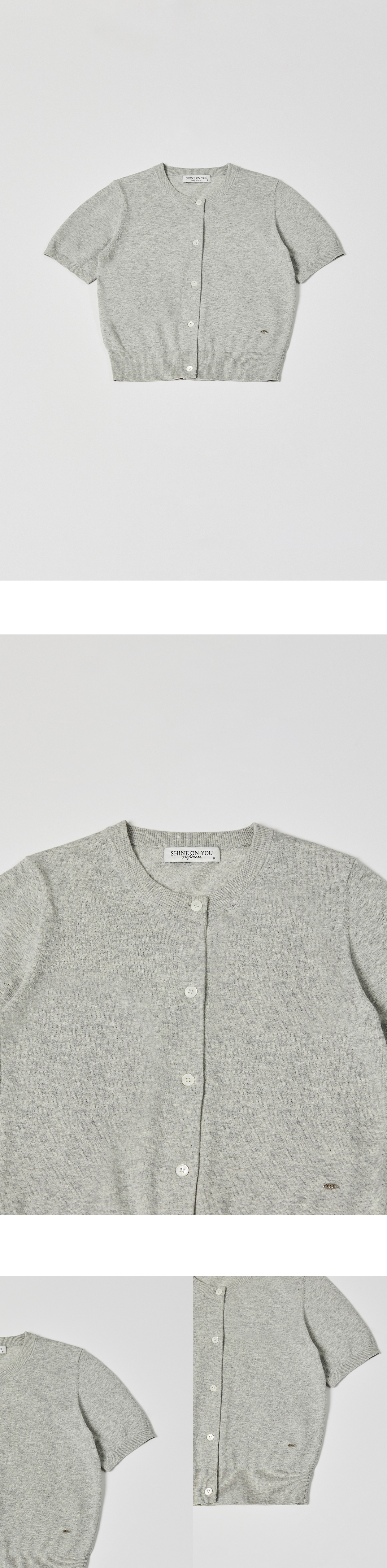 Linen Cotton Basic Short Sleeve Cardigan_Silver Melange