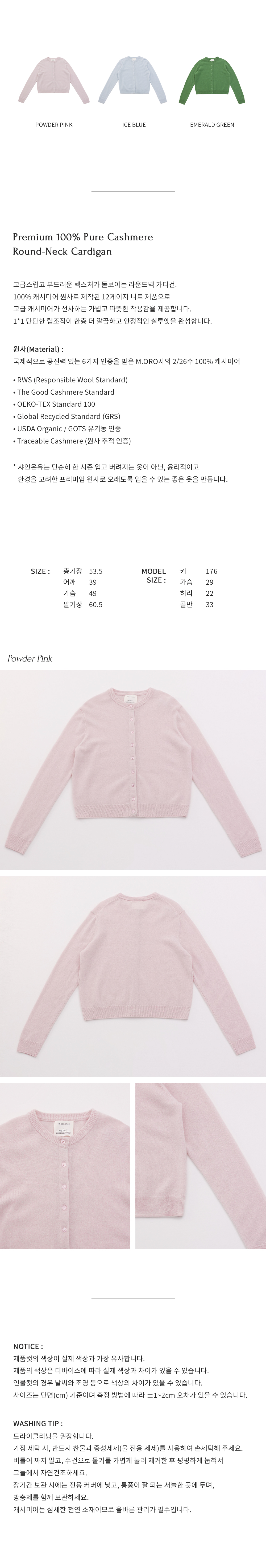 Premium 100% Pure Cashmere Round-Neck Cardigan_Powder Pink
