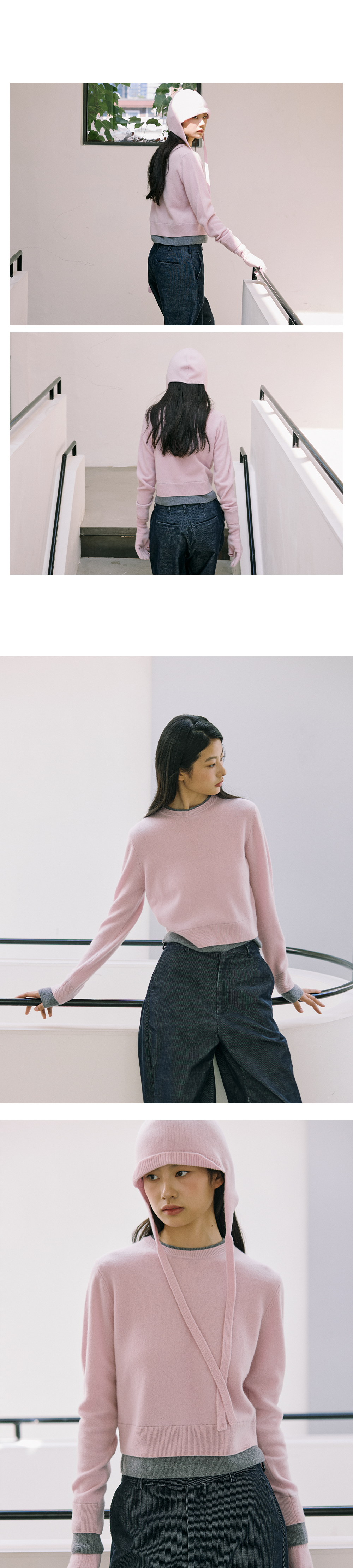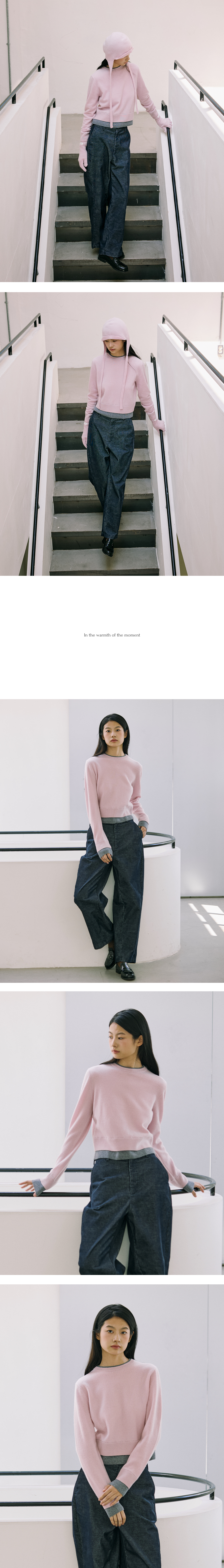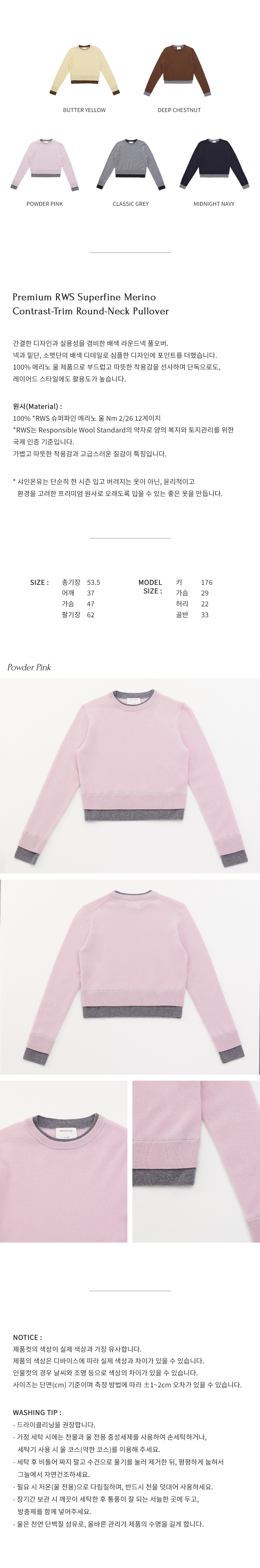Premium RWS Superfine Merino Contrast-Trim Round-Neck Pullover_Powder Pink