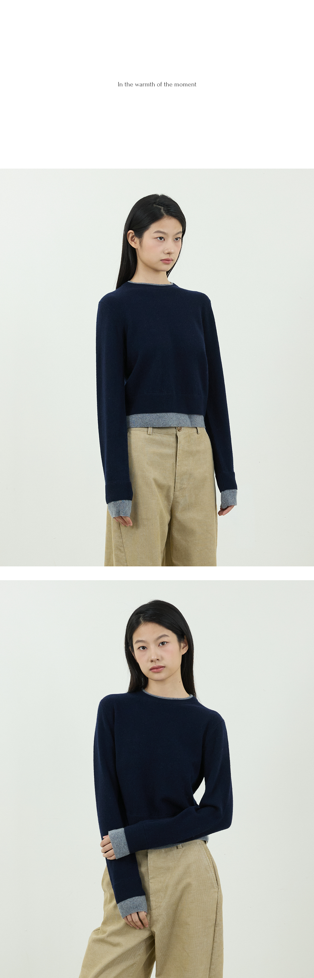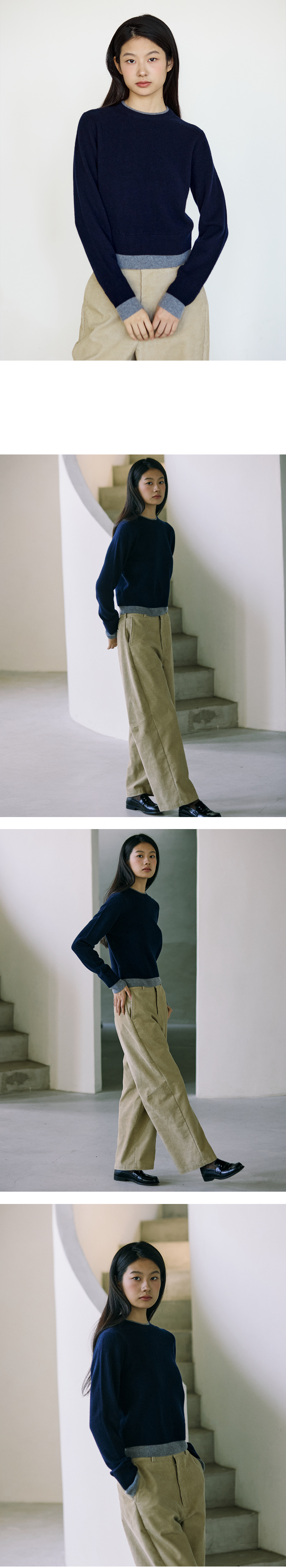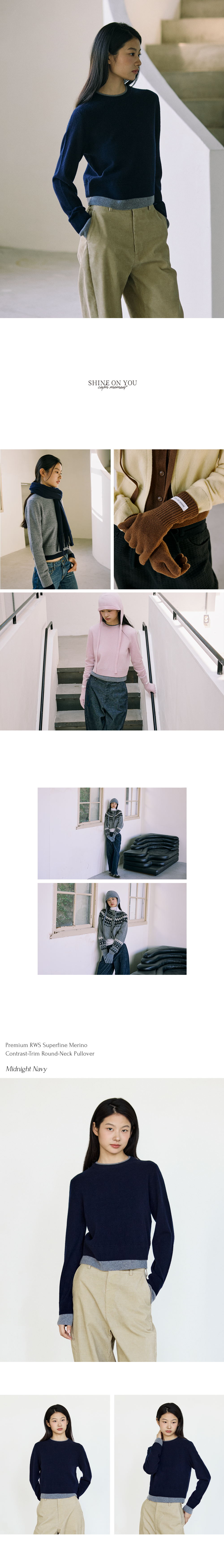 Premium RWS Superfine Merino Contrast-Trim Round-Neck Pullover_Midnight Navy