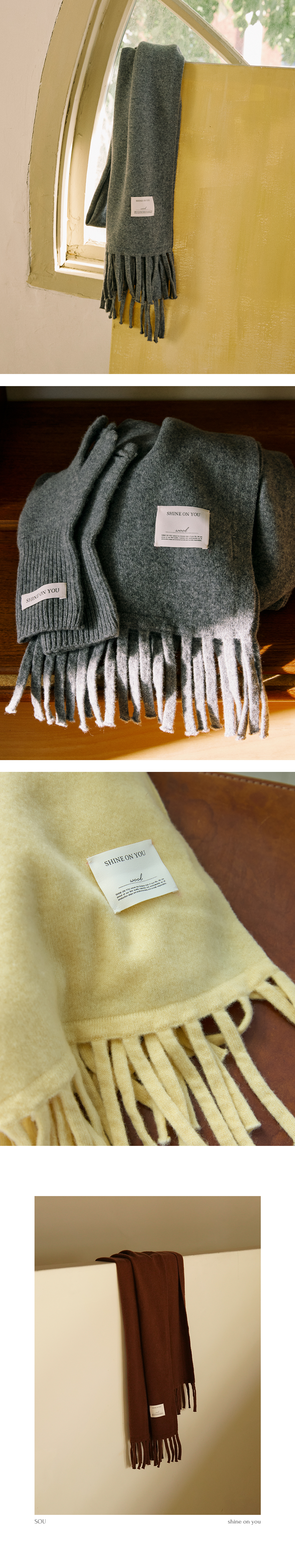 SHINE ON YOU values the timeless style of your life and strives to provide our premium knitwear. All of our products are produced in our own factory with a limited number based on the customers' requests.